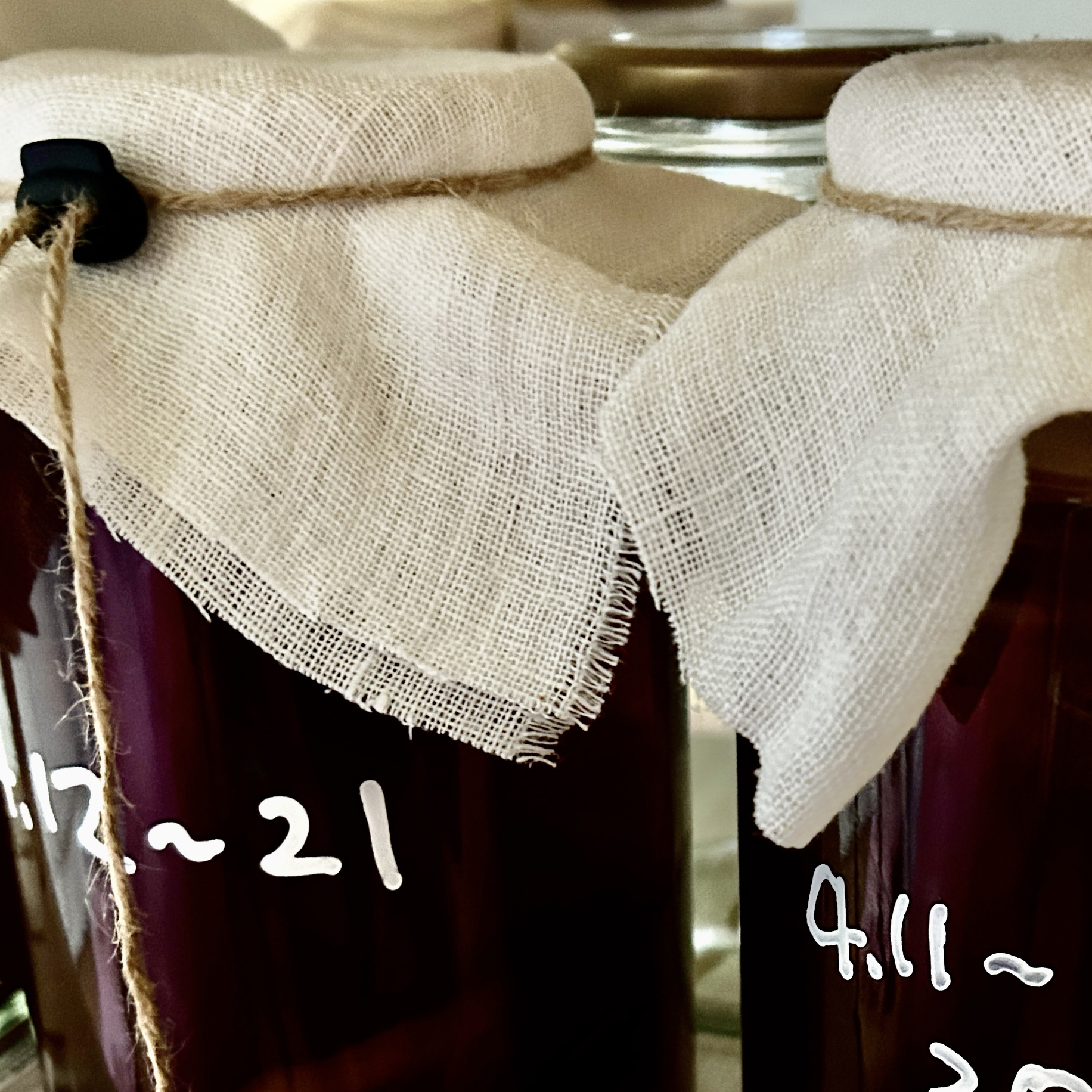 유리병 겉면에 배양 시작과 끝나는 날짜를 적어 놓으면 편하다. 밝은색(백색) 보드 마커를 사용한다. 링크