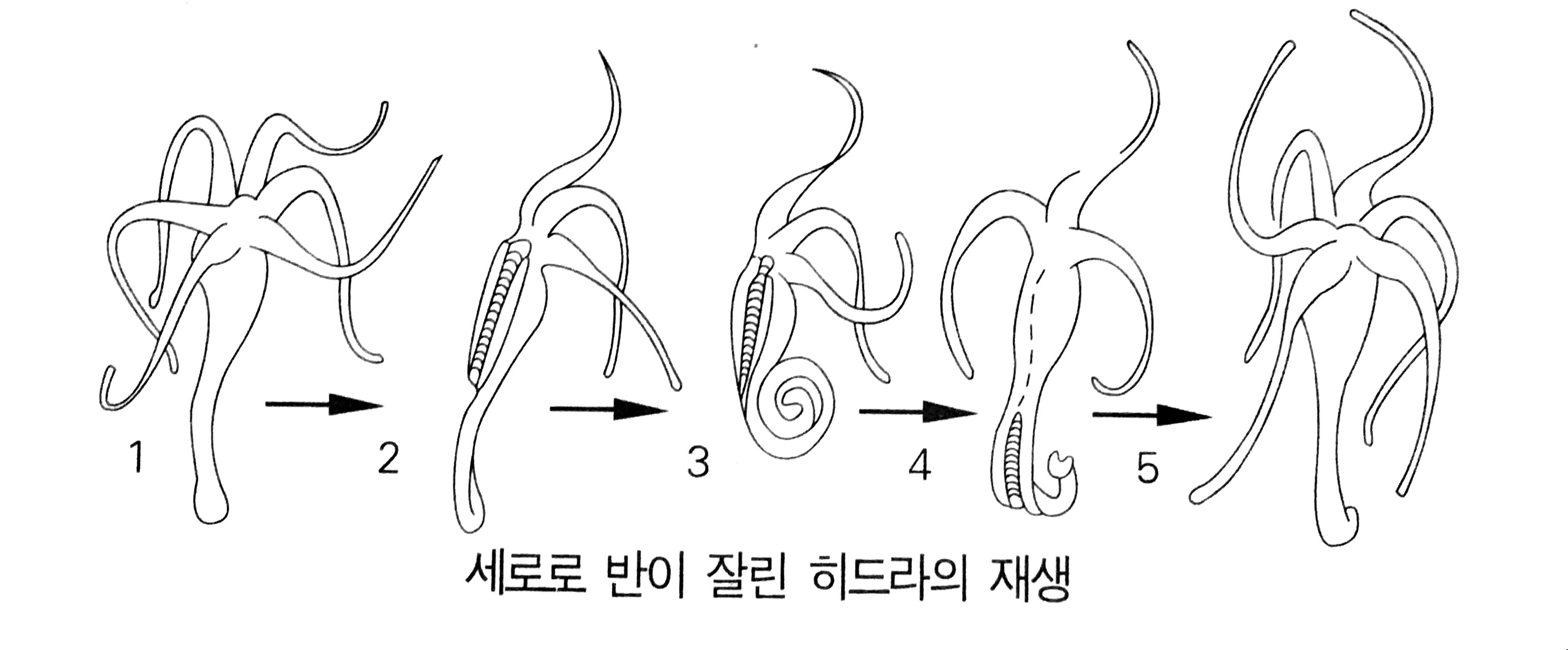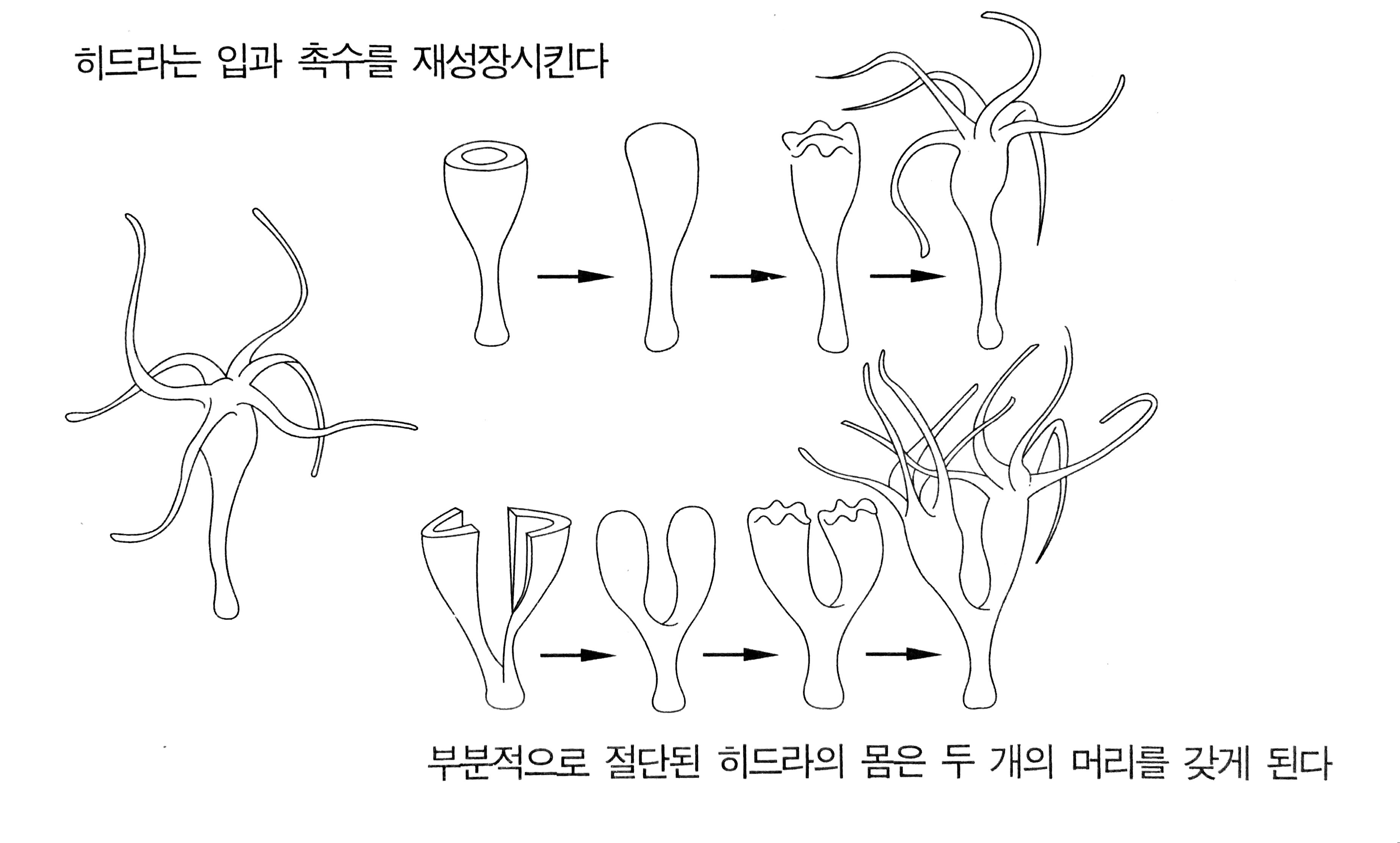 그러나 이것은 시작에 불과했다. 트렘블리의 폴립은 훨씬 놀라운 묘기를 보여주었다. 세로로 잘랐을 때, 각 반쪽은 우선 잘린 부분의 상처를 깨끗이 회복한 다음 모자라는 촉각들을 재성장시켰다. 트렘블리는 가능한 한 잘게 수많은 조각으로 잘라 보았는데, 가운데 몸의 일부를 포함하는 조각들은 모두 완전한 동물로 재성장했다. 한 예를 들면, 한 폴립을 4등분하면 셋 또는 넷의 폴립이 만들어지는데, 이런 식으로 하여 그는 한 폴립으로부터 50개의 폴립을 만들기도 했다.