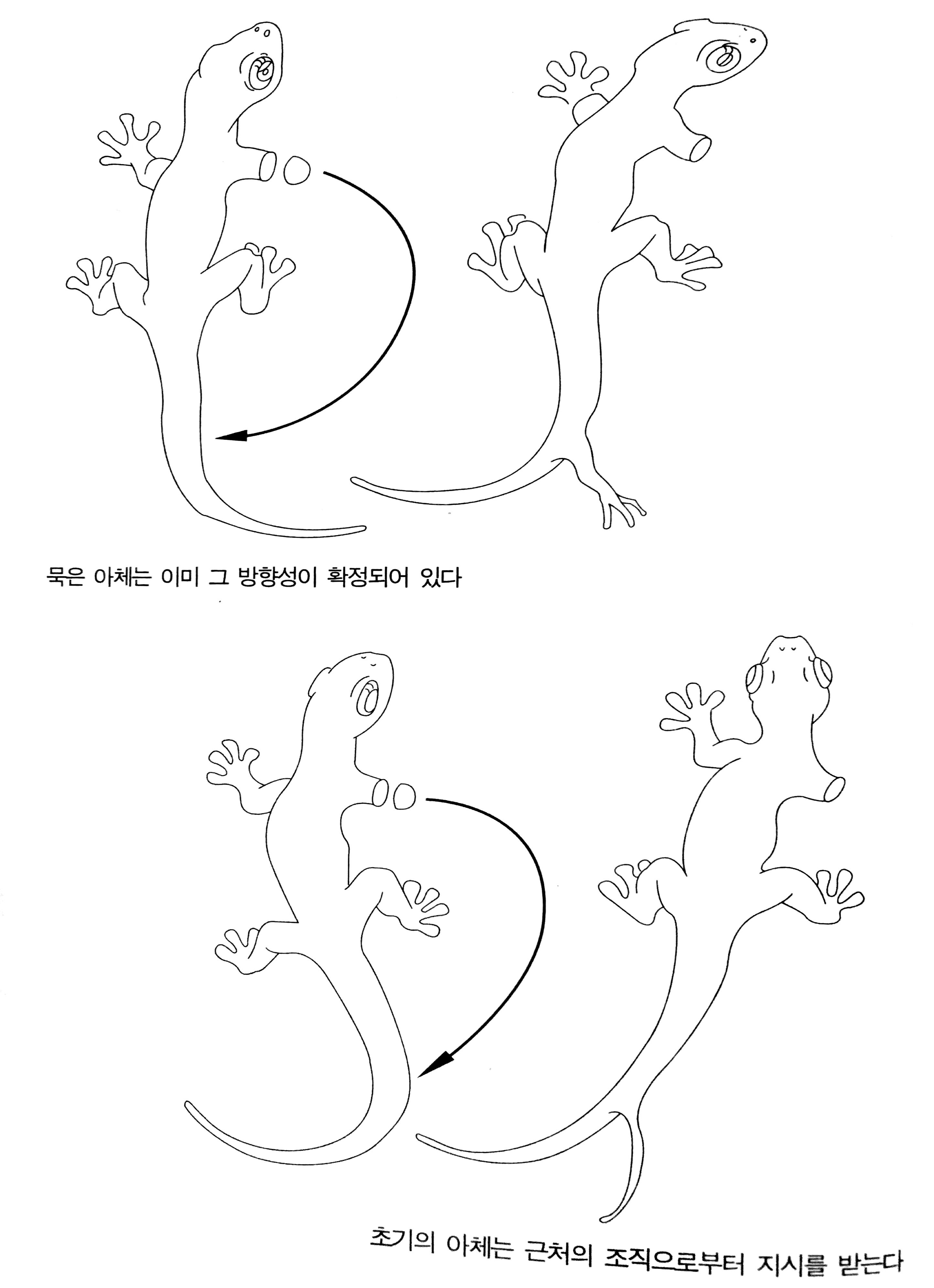 - 주성走性 : 생물의 재생에 있어서 앞에서 뒤로 그리고 위에서 아래로의 방향성이 보존된다.
