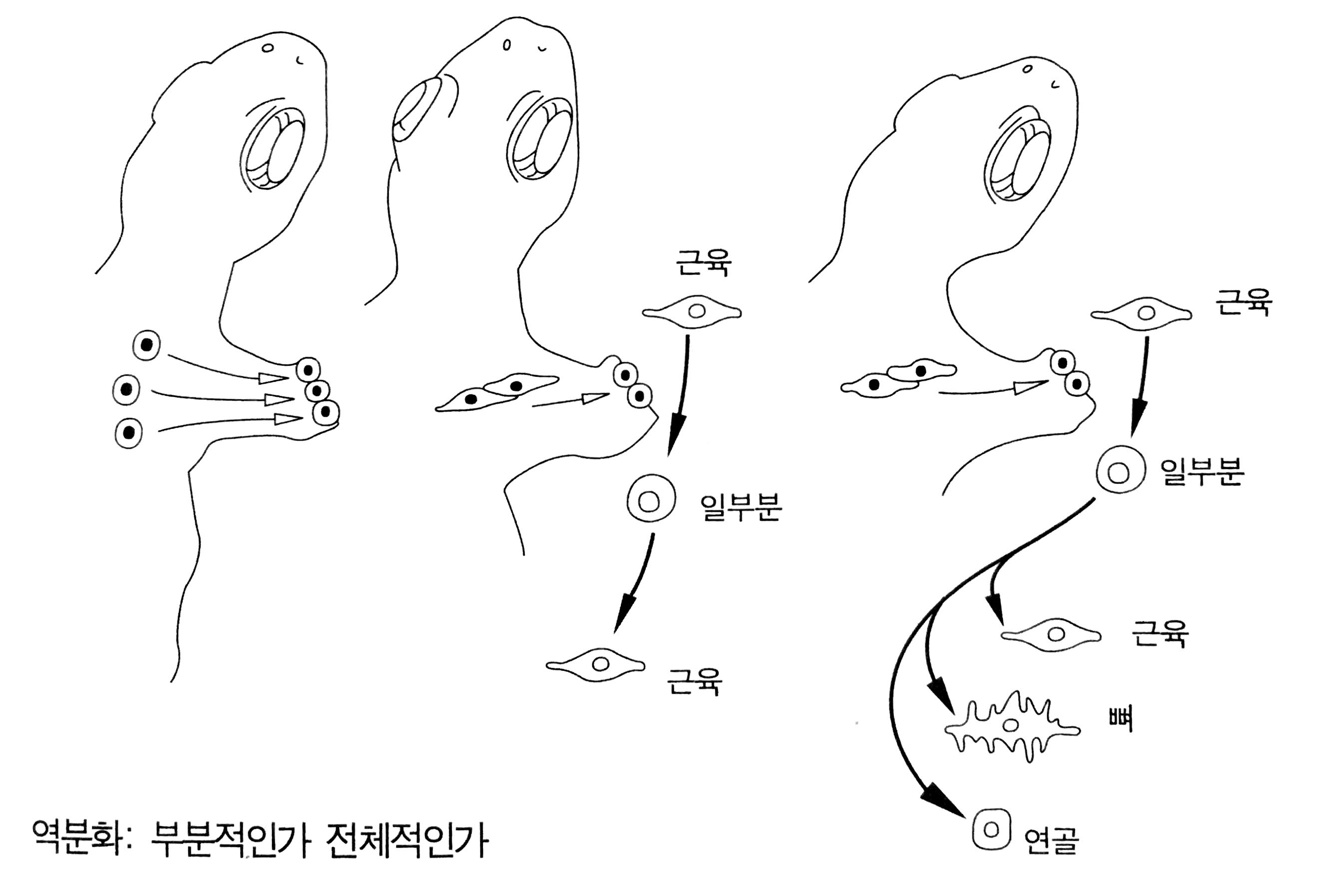 우리는, 지금 적어도 몇 종류의 세포들은 초기 상태로 완전히 역행할 수 있고 그러한 역분화가 도롱뇽같은 복잡한 동물에서 아체가 형성되는 주요한 - 아마도 유일한 - 방법이라는 것을 알고 있다.
