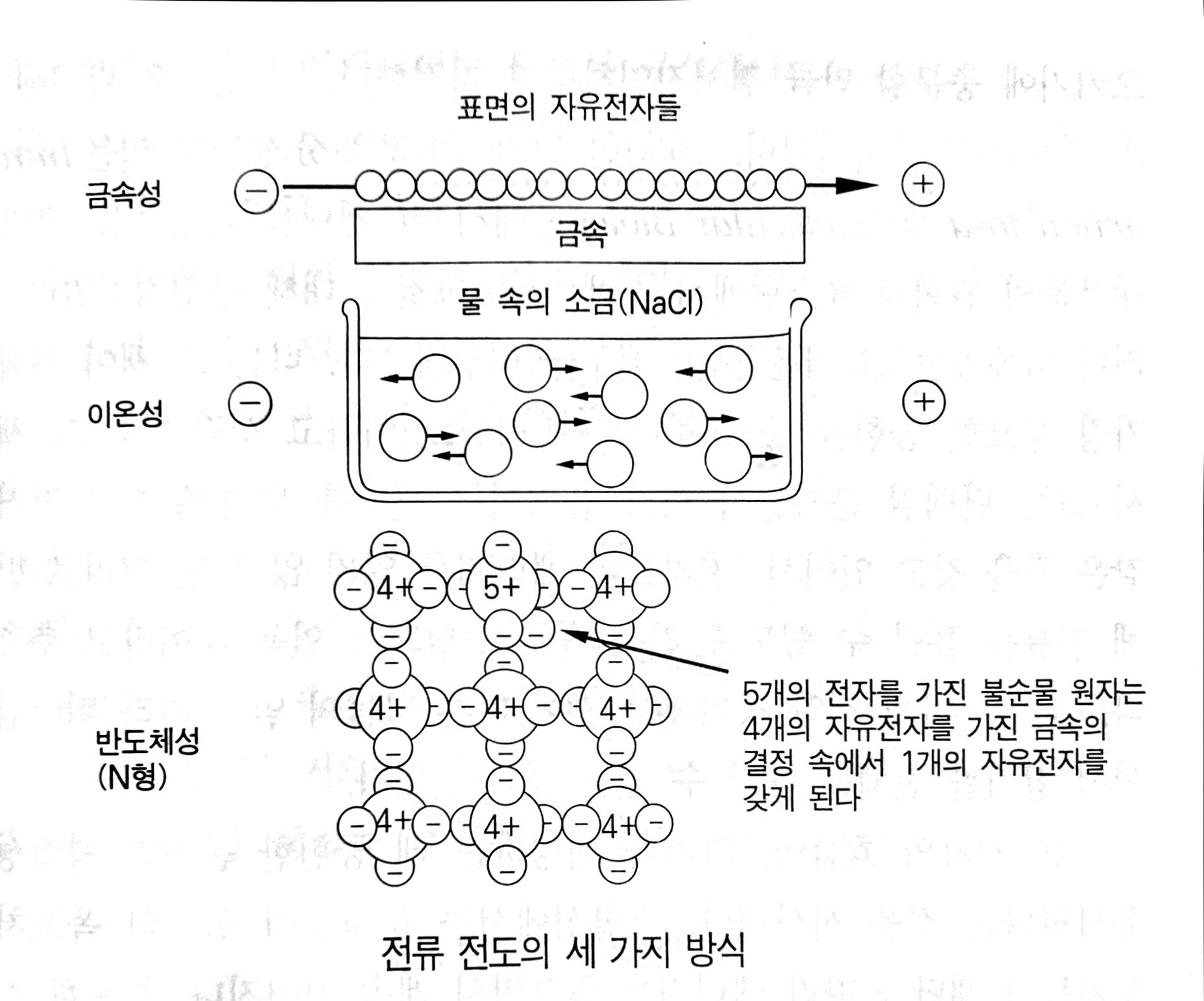 세번째 전도 방식인 반도체 전도는 1930년대만 해도 실험실 내의 흥미거리일 뿐이었다. 도체와 부도체의 중간적 성격으로서 반도체는 단지 적은 전류밖에 흘릴 수 없다는 점에서는 비효과적 방식이나, 먼 거리로 쉽게 전류를 전도시킬 수 있다. 그것이 없었다면, 오늘날의 컴퓨터, 인공위성, 그리고 다른 모든 전자공학의 산물들이 나오지 못했을 것이다.