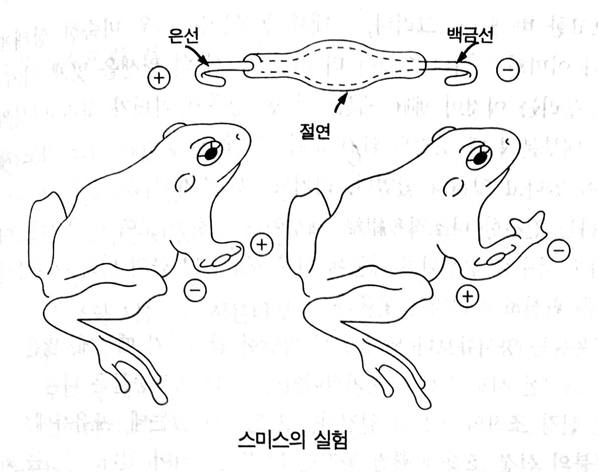 상당히 작고 미세한 전압의 전지를 만들기 위해 스미스는 갈바니와 볼타 시대의 간단한 기술로 돌아갔다. 그는 짧은 길이의 은선을 같은 길이의 백금선에 이어 붙이고, 이음새 주변을 실리콘으로 절연시켰다. 그가 이 두 금속을 선택한 이유는 이온을 방출하여 주변 조직과 불필요한 반응을 일으키는 경향이 가장 적기 때문이었다. 두 개의 금속이 붙은 이 장치가 약간의 염분이 있는 개구리의 체액 속에 잠기면, 은을 붙인 쪽 끝이 양이 되고 백금을 붙인 쪽이 음이 되는 미세한 전류를 만들어냈다.