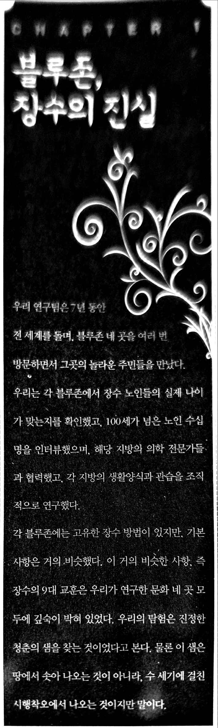 ⟪세계 장수마을 블루존⟫이라는 책 1장 시작에서 저자 뷰트너는 이렇게 말한다.