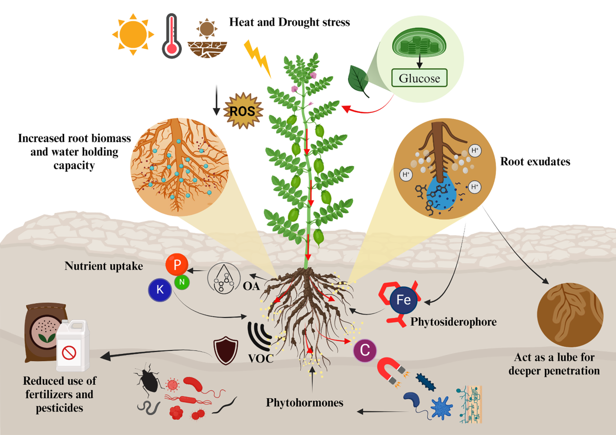 식물 뿌리는 다양한 유기물질을 분비하여 미생물과 신호를 주고받고, 미생물에게 영양분을 제공하며, 뿌리 주변 환경을 조절합니다. 뿌리 분비물은 식물이 토양 미생물과 소통하고 협력하기 위해 사용하는 중요한 매개체입니다. 식물은 뿌리에서 다양한 유기물질을 분비하여 미생물에게 영양분을 제공하고, 미생물은 식물에게 필요한 질소, 인산과 같은 영양소를 공급하거나 식물 보호에 도움을 줄 수 있습니다.