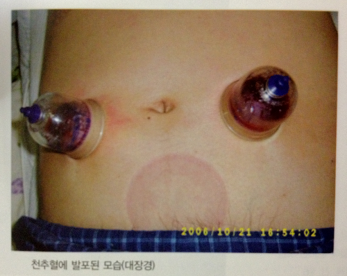 - 등뼈(척추)에 죽 내려붙인다. 장수하고 건강한 사람은 허리가 굽어 있지 않다. 모든 환자의 척추는 거의가 이상이 있고, 병석에 오래 있으면 자연히 합병증까지 오게 된다. 먼저 척추를 바로 잡아준 후 병과 관련된 중요 경혈에 부항이나 발포고약(마늘과 겨자)을 붙이거나 우촌수를 사용해 어혈에서 독수를 빼준다.