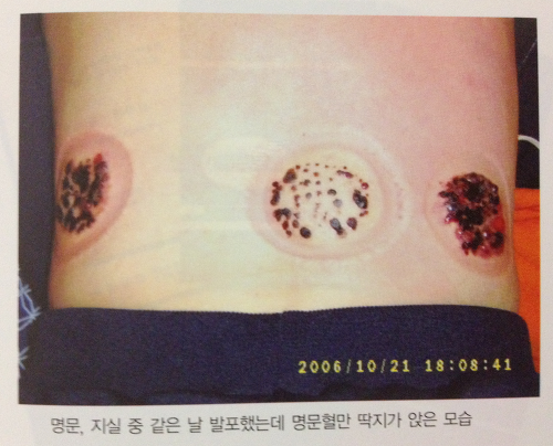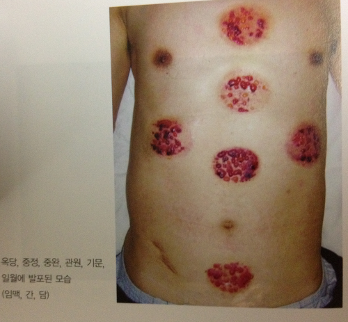 아래는 책 첫부분에 각 경혈의 발포된 상태를 보여주는 사진들입니다. 참고하시길...