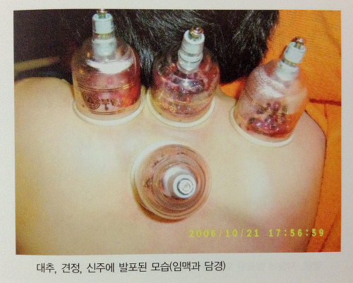 - 빨리 낫고 싶은 욕심으로 부항 개수를 많이 하면 몸살과 오한이 날 수 있고 괴롭다. 어떤 분은 이틀에 한 번 하면 진물이 몸속으로 들어가는 것 아닌가 하고 묻는 분도 있다. 그것은 아니다. 그런데 발포 자리가 원래 부위보다 넓어지면서 번지는 수가 있다. 중증이다. 부항 붙이는데 애를 먹는다. 기력도 떨어지고 그럴 때에 북어(황태)를 달여서 마셔주면 해독작용이 돼서 훨씬 덜 피곤하다. 평상시에도 어느 가정에서나 한 달에 한 번 정도 북어국을 끓여 식구들이 같이 먹을 필요가 있다.